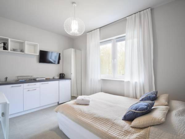 Studio z łóżkiem typu king-size i rozkładaną sofą. The private pool and sauna are the special features of this studio. Meals can be prepared in the kitchen, which is fitted with a stovetop, a refrigerator, a dishwasher and kitchenware. The studio offers a private entrance, a tea and coffee maker, a terrace with garden views as well as a private bathroom featuring a shower. The unit offers 2 beds. Studio - 4 osobowy. Powierzchnia pokoju ok.: 28 mkw. ;