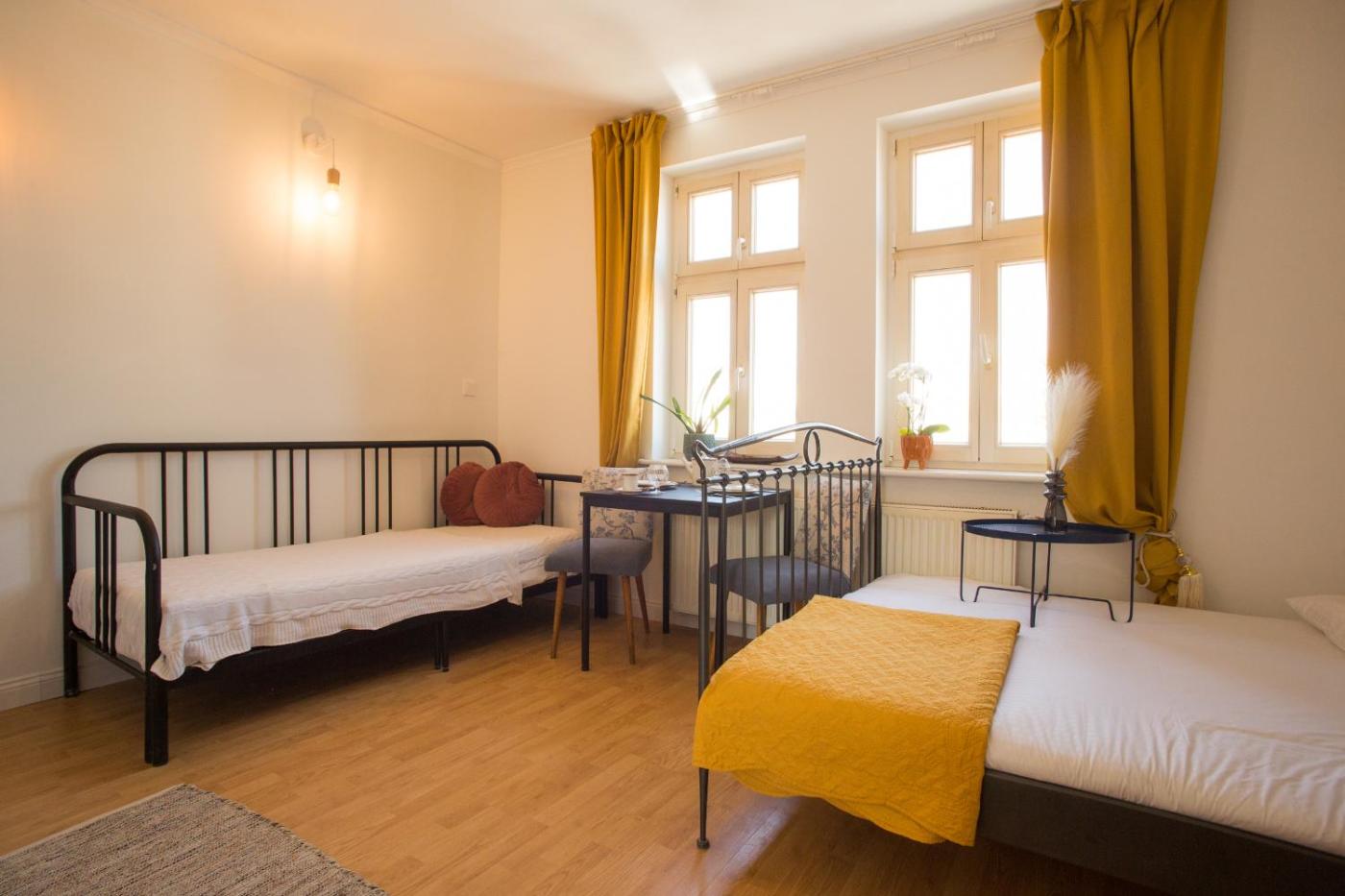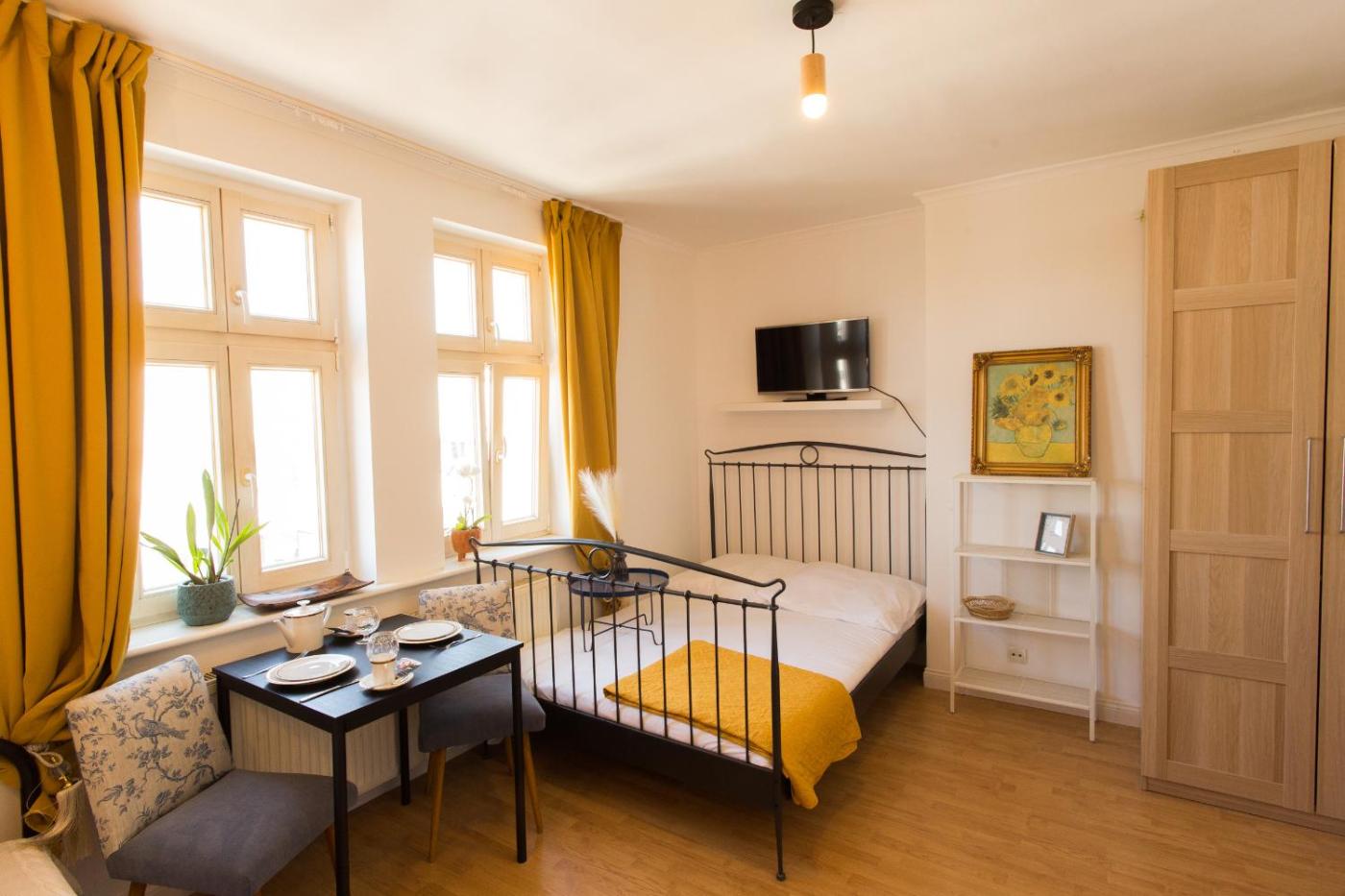 Apartament z 1 sypialnią. This apartment is comprised of 1 living room, 1 separate bedroom and 1 bathroom with a bath and a hairdryer. The well-equipped kitchenette features a stovetop, a refrigerator, kitchenware and a microwave. The apartment offers a flat-screen TV with streaming services, a washing machine, a dining area, a wardrobe as well as city views. The unit offers 2 beds. Apartament - 3 osobowy. Powierzchnia pokoju ok.: 39 mkw.